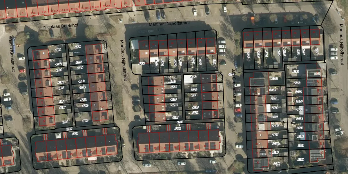 Gebruik de zoekbalk of klik op een perceel om informatie over het perceel te bekijken.