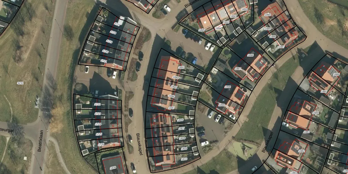Gebruik de zoekbalk of klik op een perceel om informatie over het perceel te bekijken.