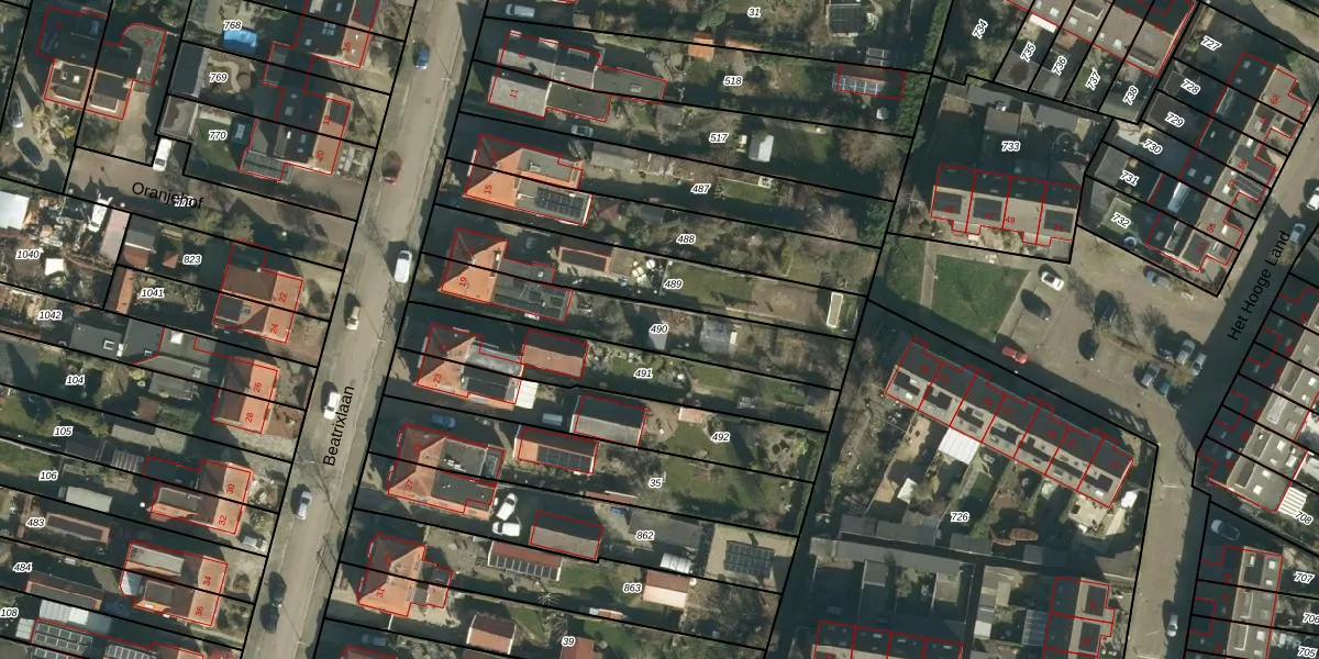 Gebruik de zoekbalk of klik op een perceel om informatie over het perceel te bekijken.