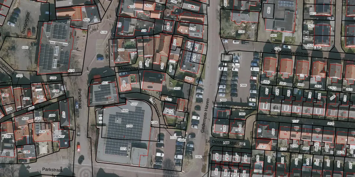 Gebruik de zoekbalk of klik op een perceel om informatie over het perceel te bekijken.