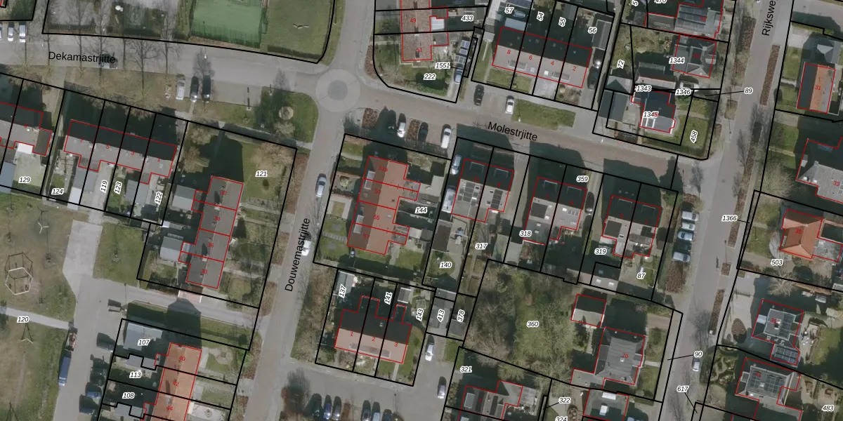 Gebruik de zoekbalk of klik op een perceel om informatie over het perceel te bekijken.
