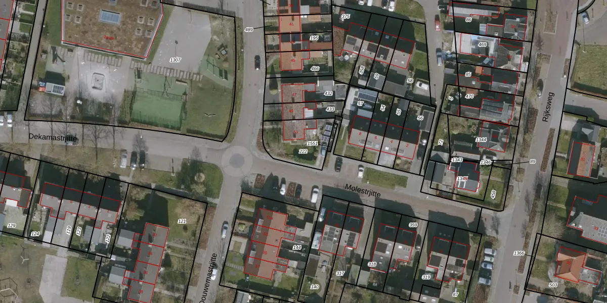 Gebruik de zoekbalk of klik op een perceel om informatie over het perceel te bekijken.