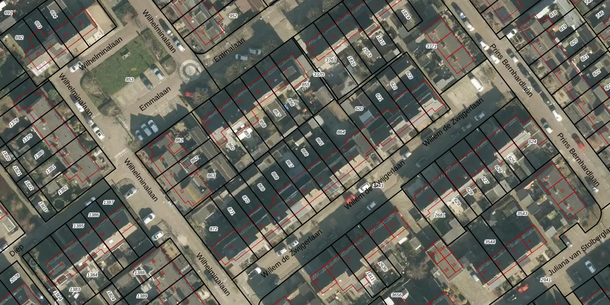 Gebruik de zoekbalk of klik op een perceel om informatie over het perceel te bekijken.