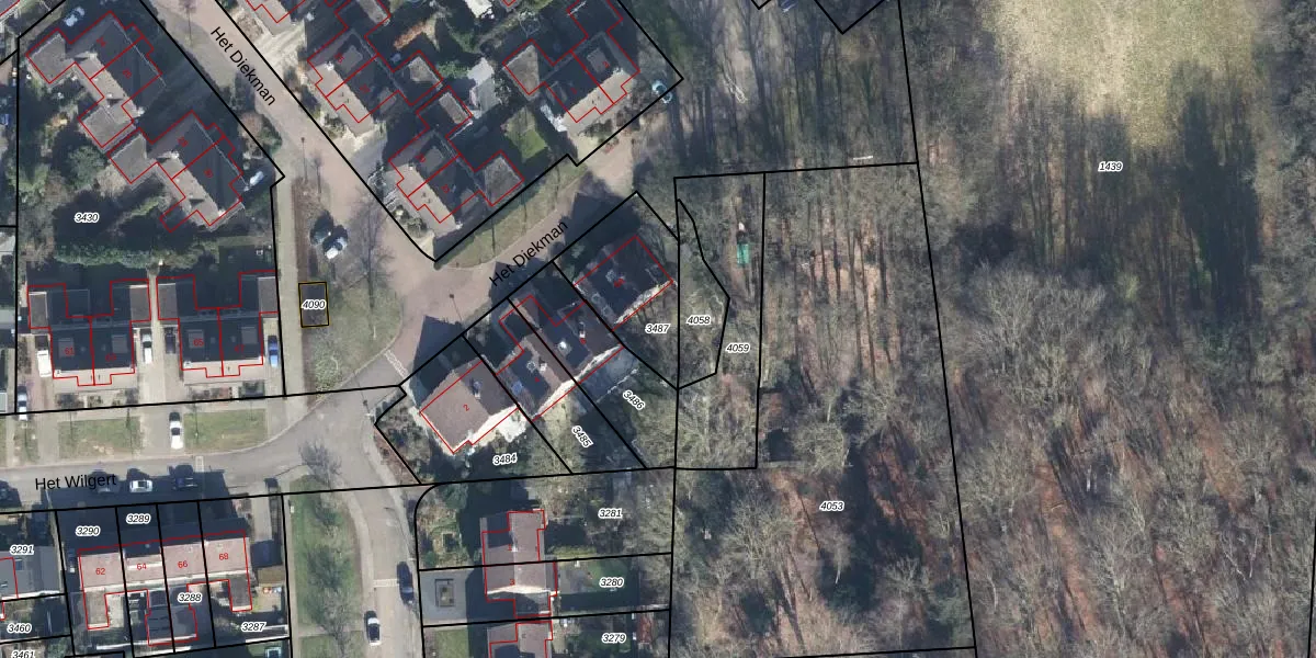 Gebruik de zoekbalk of klik op een perceel om informatie over het perceel te bekijken.