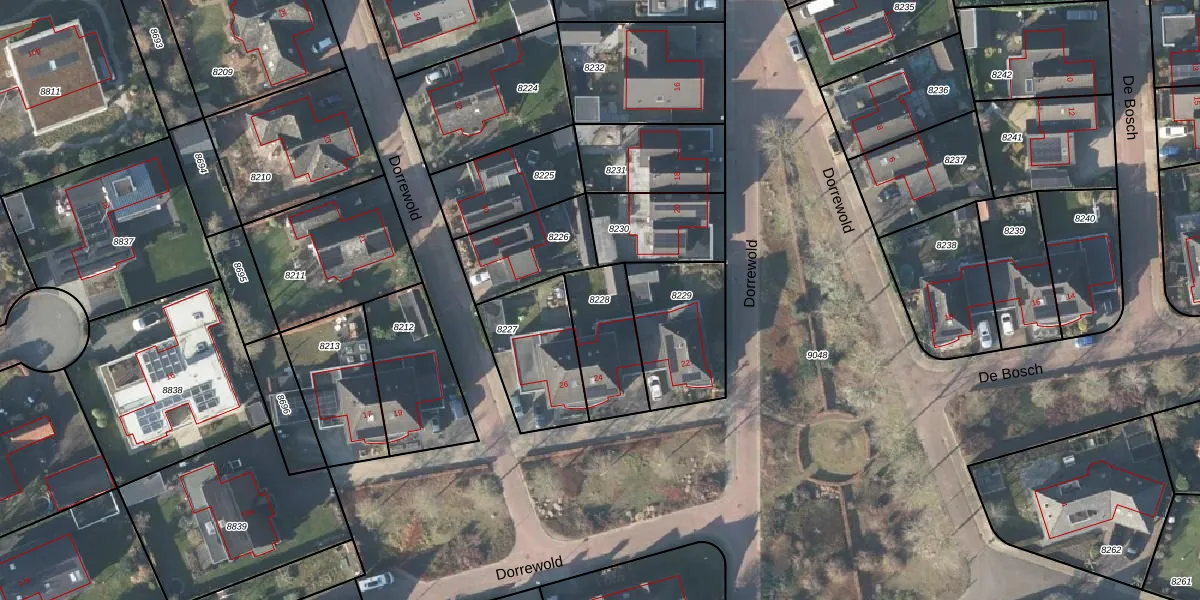Gebruik de zoekbalk of klik op een perceel om informatie over het perceel te bekijken.