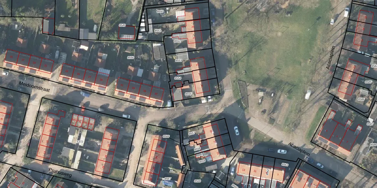 Gebruik de zoekbalk of klik op een perceel om informatie over het perceel te bekijken.