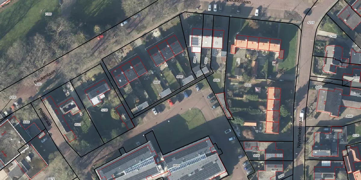 Gebruik de zoekbalk of klik op een perceel om informatie over het perceel te bekijken.