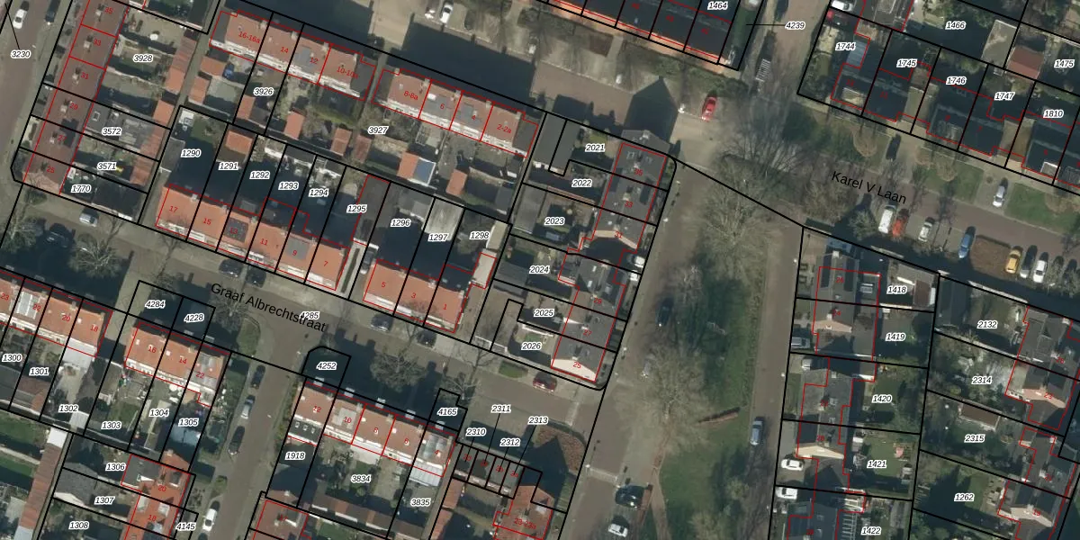 Gebruik de zoekbalk of klik op een perceel om informatie over het perceel te bekijken.