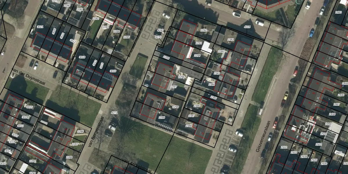 Gebruik de zoekbalk of klik op een perceel om informatie over het perceel te bekijken.
