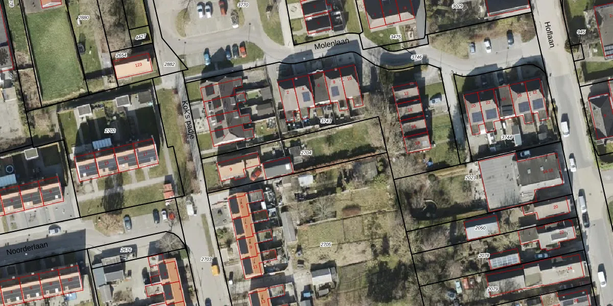 Gebruik de zoekbalk of klik op een perceel om informatie over het perceel te bekijken.