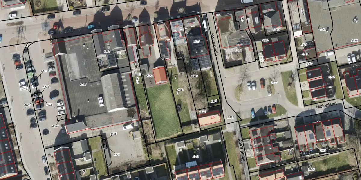 Gebruik de zoekbalk of klik op een perceel om informatie over het perceel te bekijken.