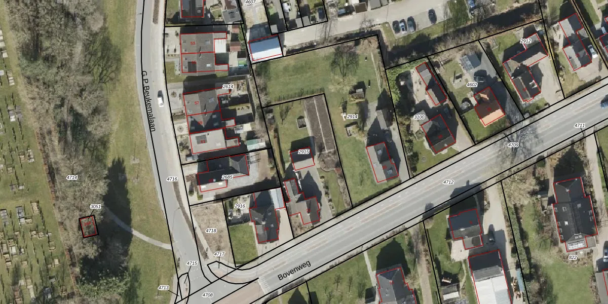 Gebruik de zoekbalk of klik op een perceel om informatie over het perceel te bekijken.