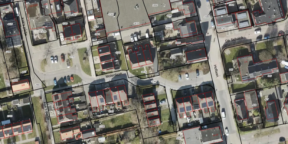 Gebruik de zoekbalk of klik op een perceel om informatie over het perceel te bekijken.