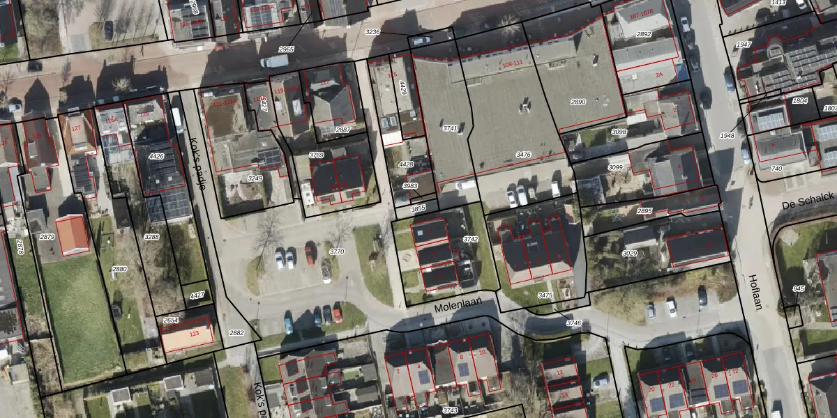 Gebruik de zoekbalk of klik op een perceel om informatie over het perceel te bekijken.