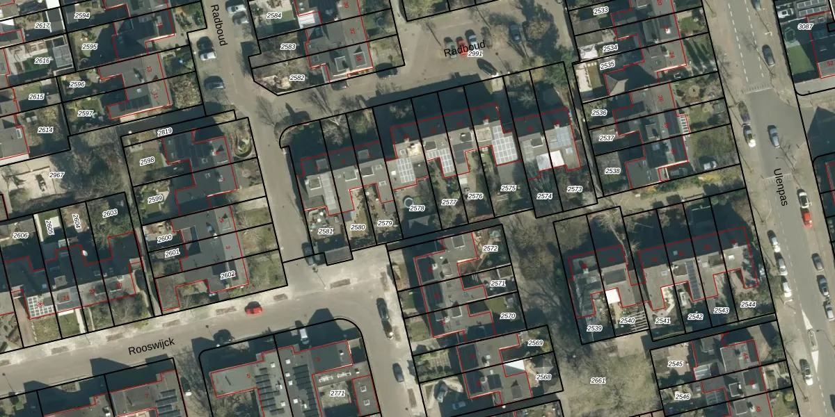 Gebruik de zoekbalk of klik op een perceel om informatie over het perceel te bekijken.
