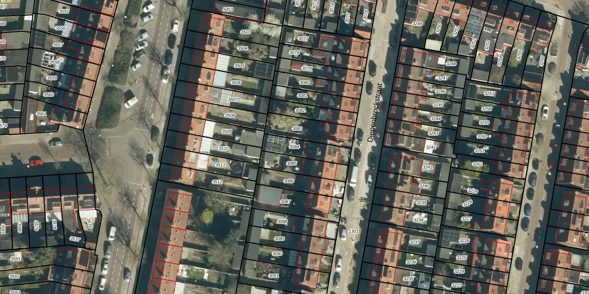 Gebruik de zoekbalk of klik op een perceel om informatie over het perceel te bekijken.