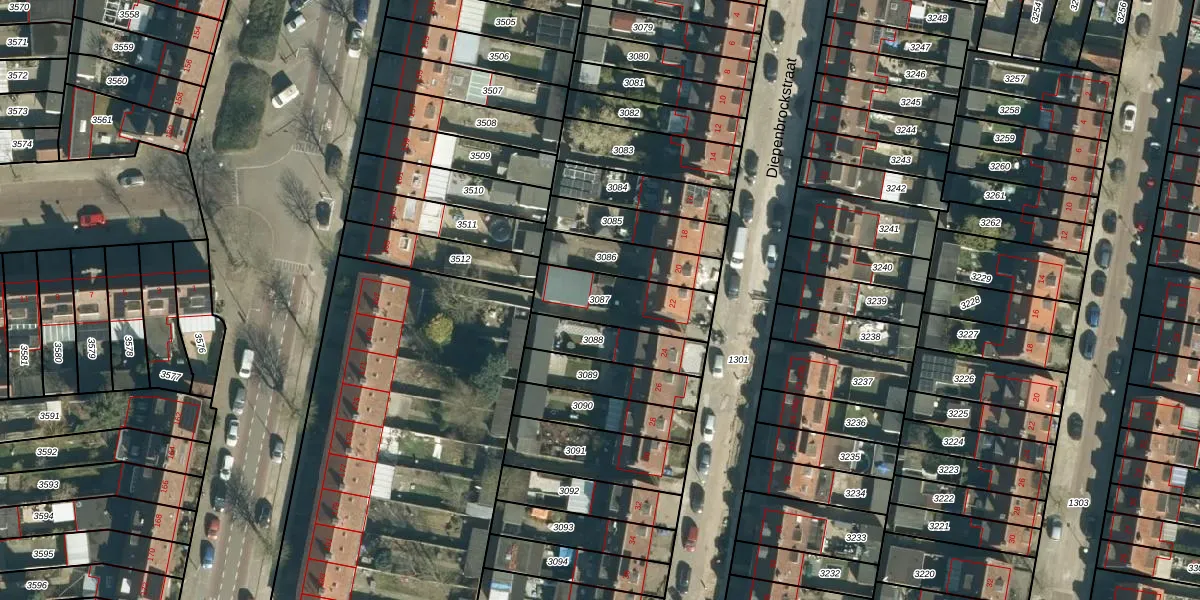 Gebruik de zoekbalk of klik op een perceel om informatie over het perceel te bekijken.