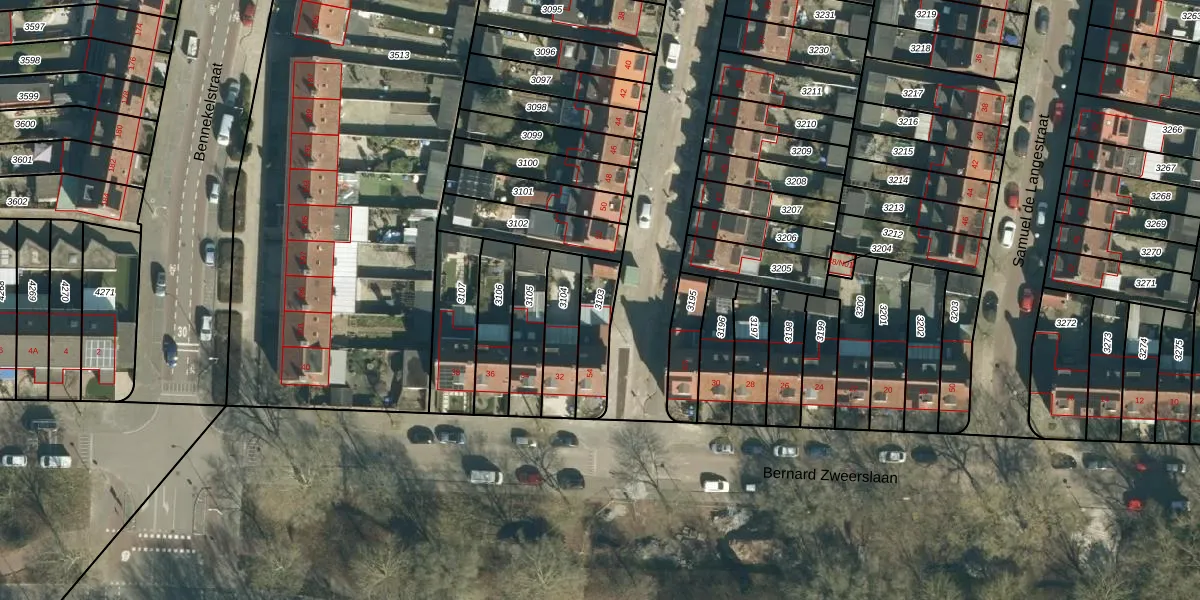 Gebruik de zoekbalk of klik op een perceel om informatie over het perceel te bekijken.