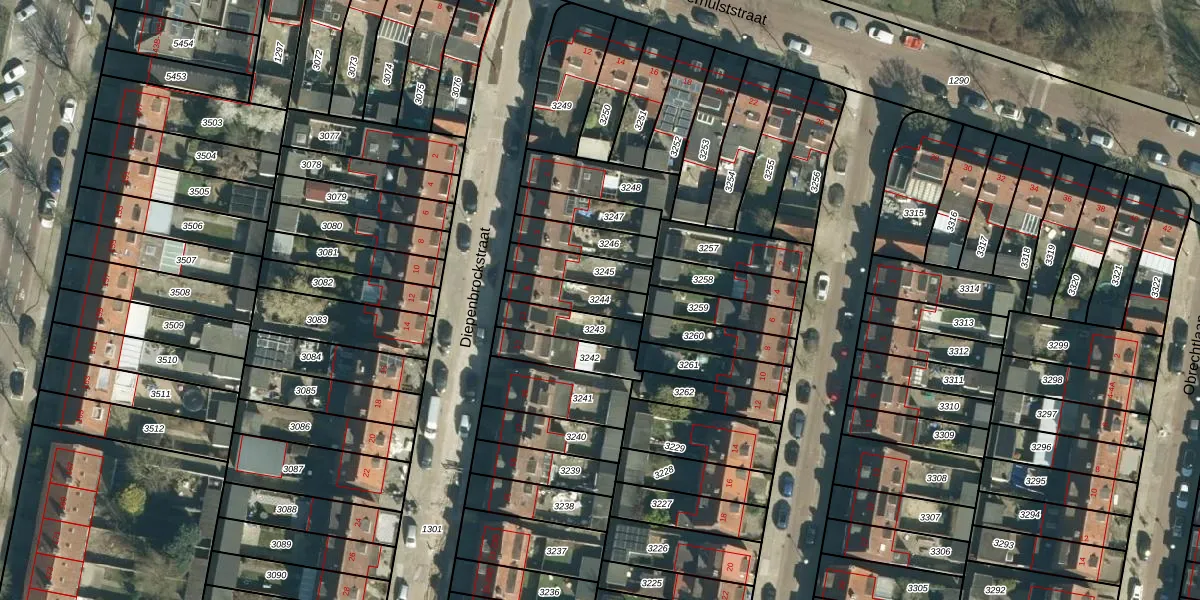 Gebruik de zoekbalk of klik op een perceel om informatie over het perceel te bekijken.