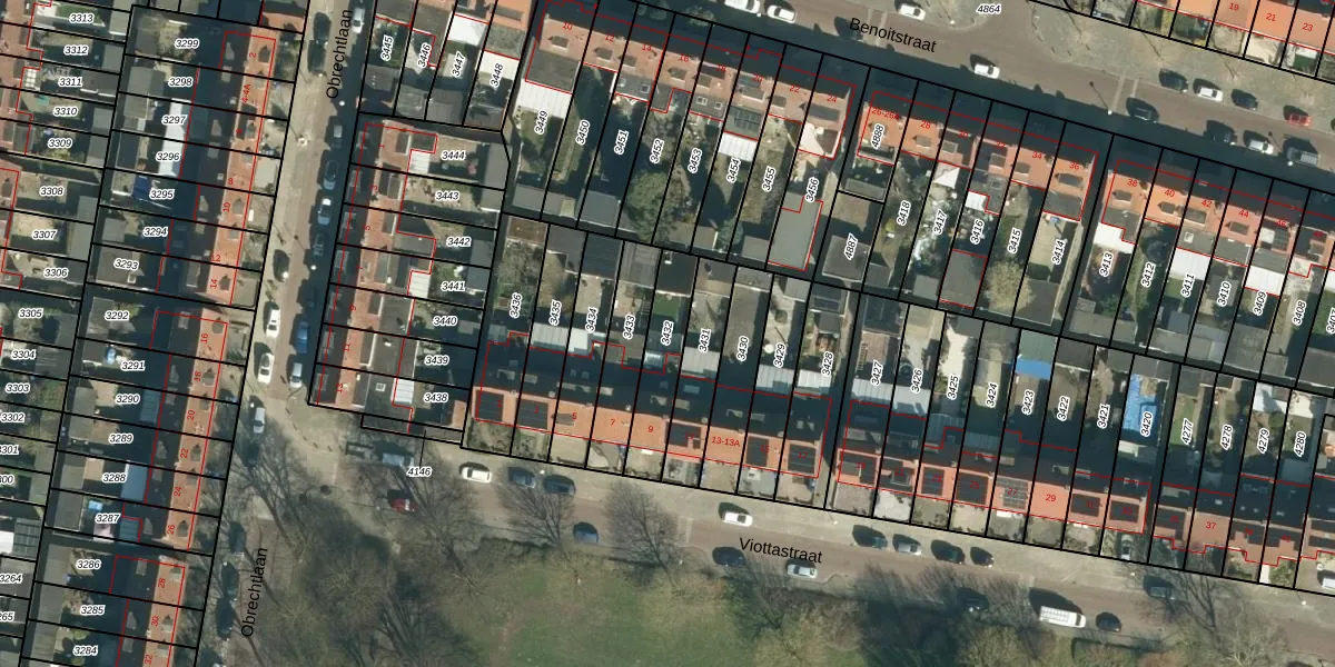 Gebruik de zoekbalk of klik op een perceel om informatie over het perceel te bekijken.