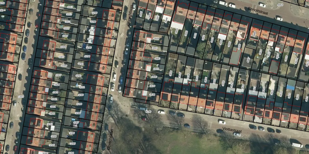 Gebruik de zoekbalk of klik op een perceel om informatie over het perceel te bekijken.