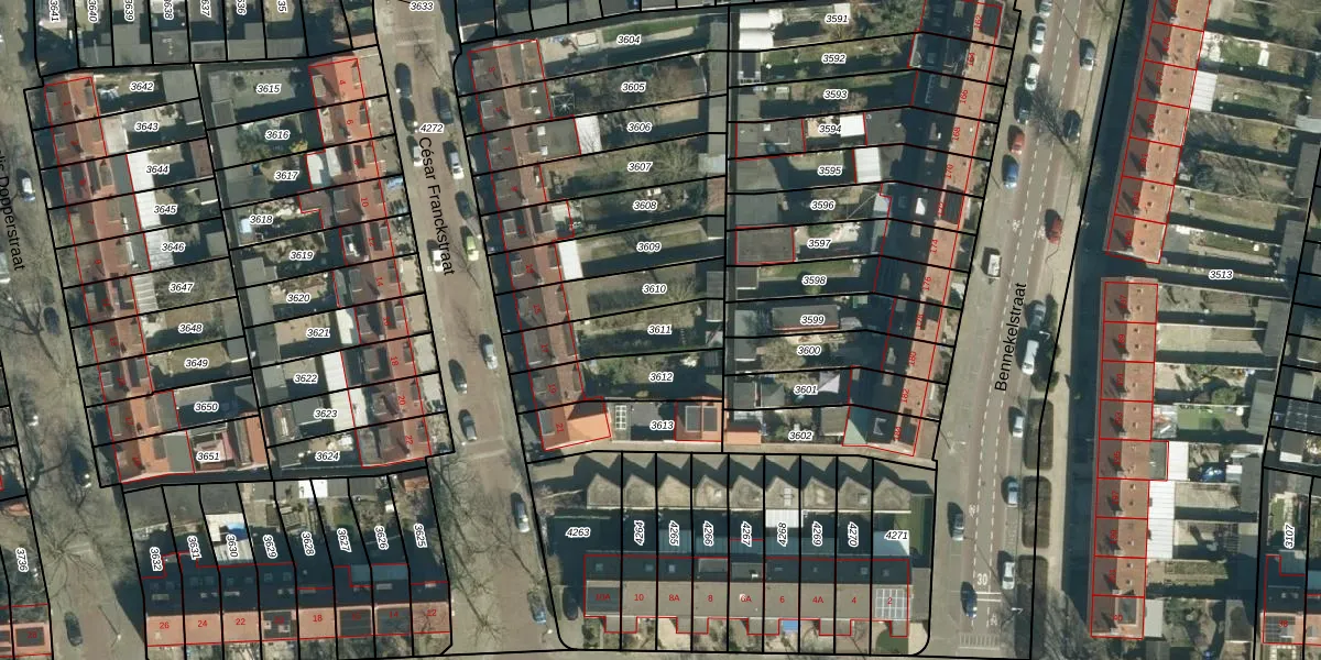 Gebruik de zoekbalk of klik op een perceel om informatie over het perceel te bekijken.