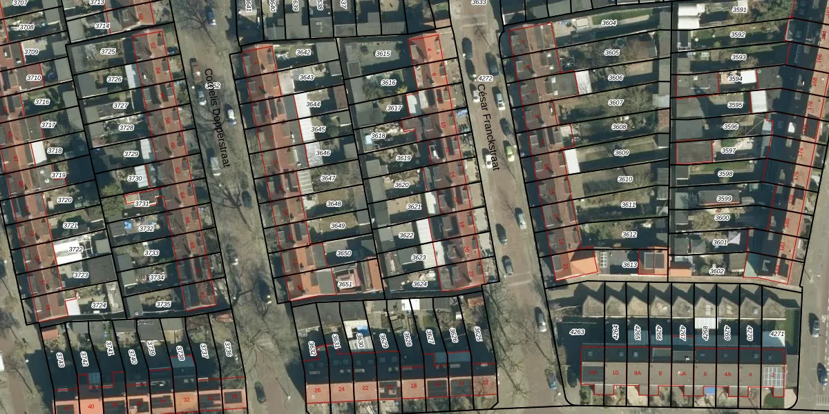 Gebruik de zoekbalk of klik op een perceel om informatie over het perceel te bekijken.