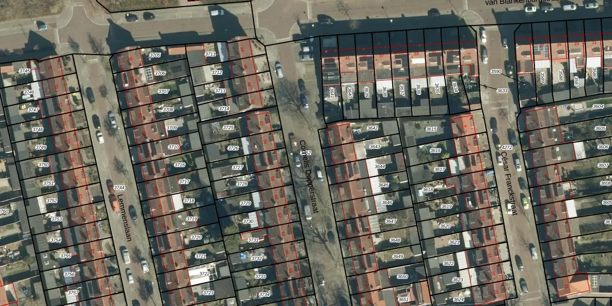 Gebruik de zoekbalk of klik op een perceel om informatie over het perceel te bekijken.