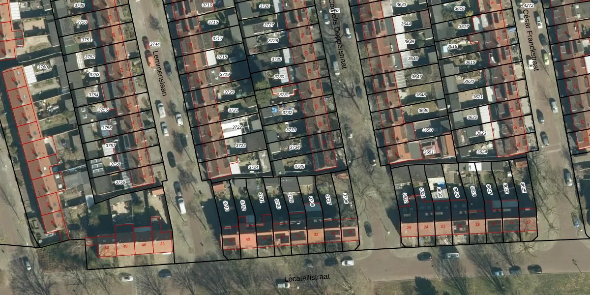Gebruik de zoekbalk of klik op een perceel om informatie over het perceel te bekijken.