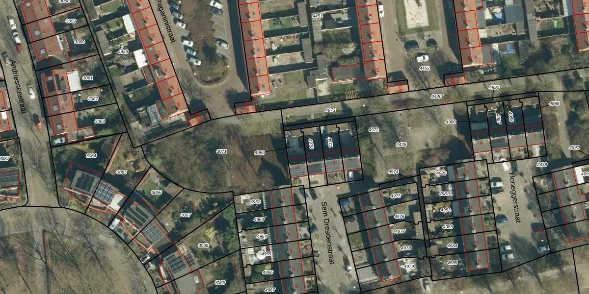 Gebruik de zoekbalk of klik op een perceel om informatie over het perceel te bekijken.