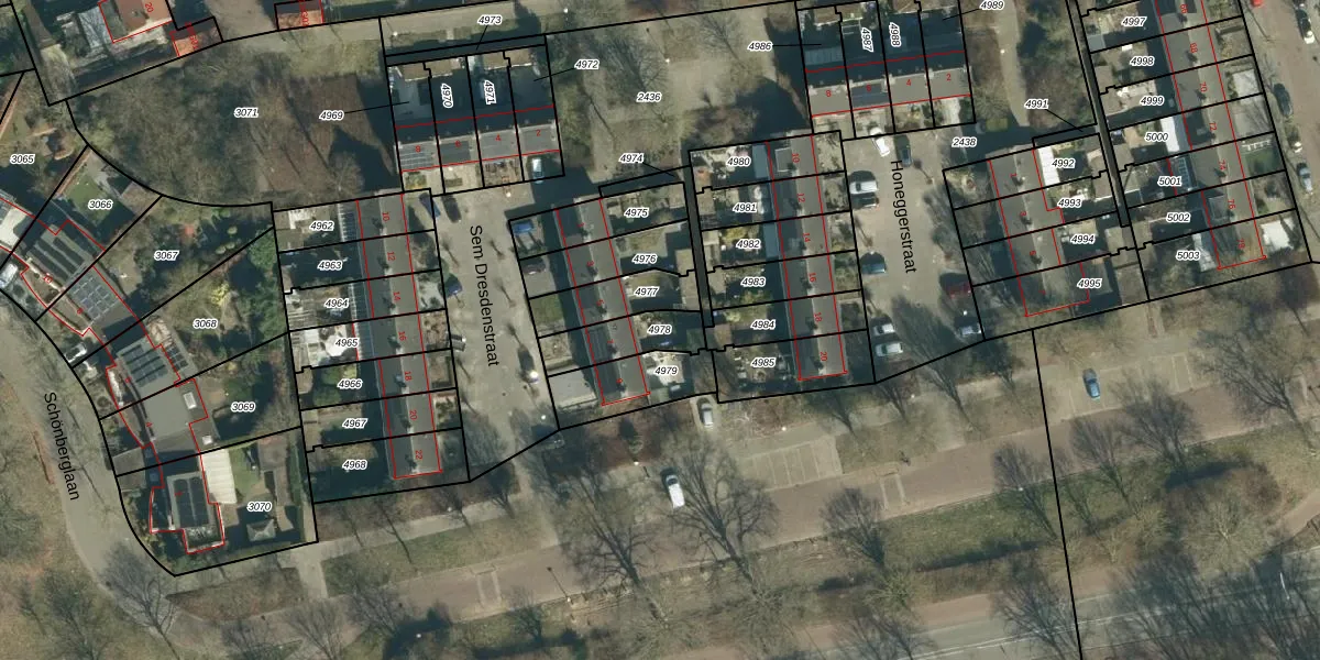 Gebruik de zoekbalk of klik op een perceel om informatie over het perceel te bekijken.