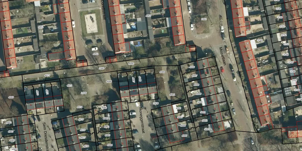 Gebruik de zoekbalk of klik op een perceel om informatie over het perceel te bekijken.
