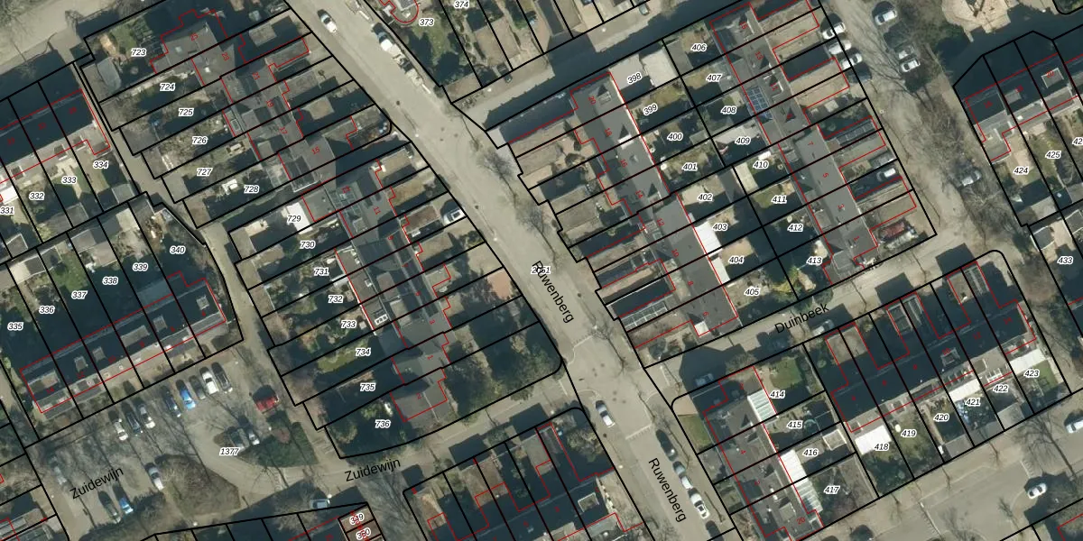 Gebruik de zoekbalk of klik op een perceel om informatie over het perceel te bekijken.