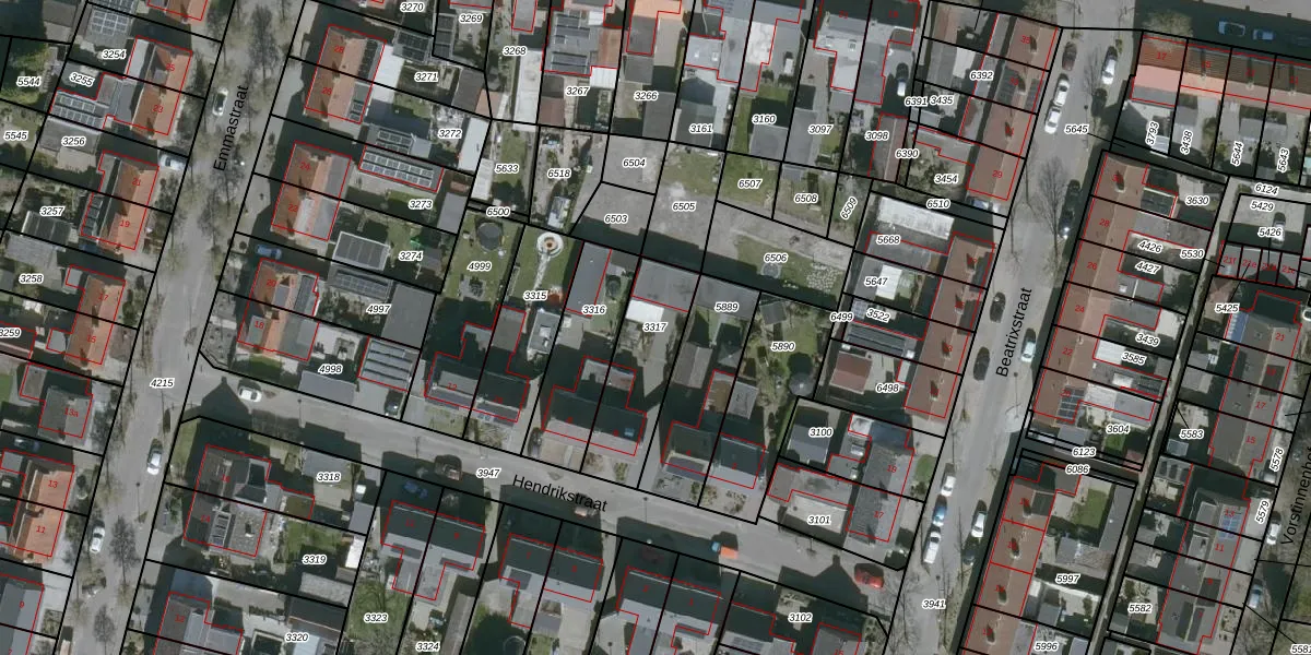 Gebruik de zoekbalk of klik op een perceel om informatie over het perceel te bekijken.