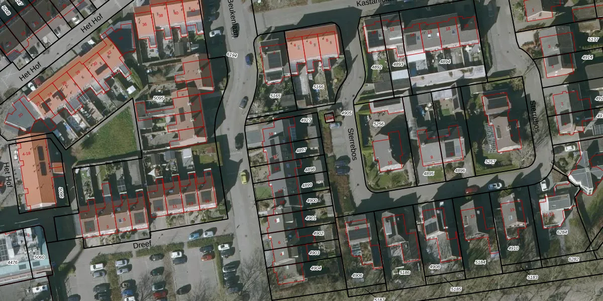 Gebruik de zoekbalk of klik op een perceel om informatie over het perceel te bekijken.