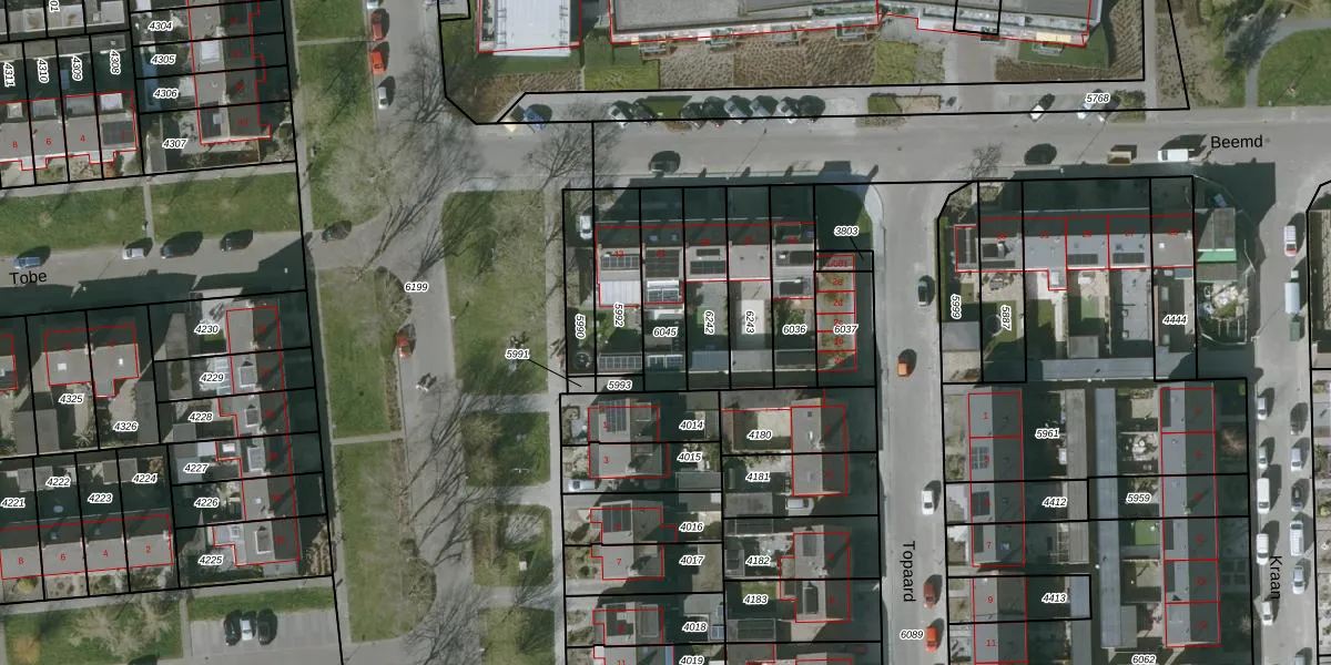 Gebruik de zoekbalk of klik op een perceel om informatie over het perceel te bekijken.