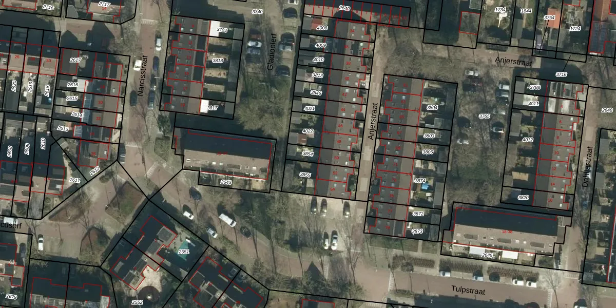 Gebruik de zoekbalk of klik op een perceel om informatie over het perceel te bekijken.
