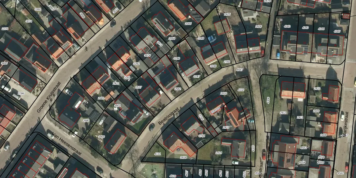 Gebruik de zoekbalk of klik op een perceel om informatie over het perceel te bekijken.