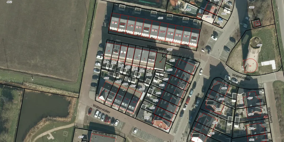 Gebruik de zoekbalk of klik op een perceel om informatie over het perceel te bekijken.