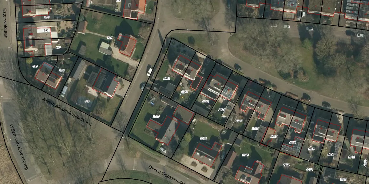 Gebruik de zoekbalk of klik op een perceel om informatie over het perceel te bekijken.