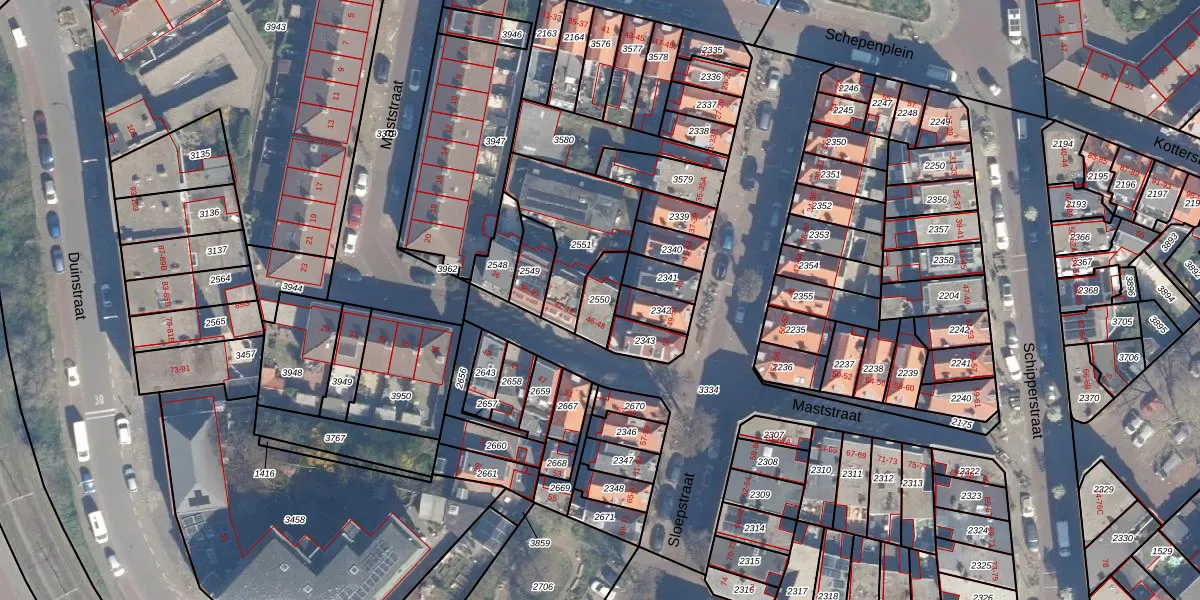 Gebruik de zoekbalk of klik op een perceel om informatie over het perceel te bekijken.