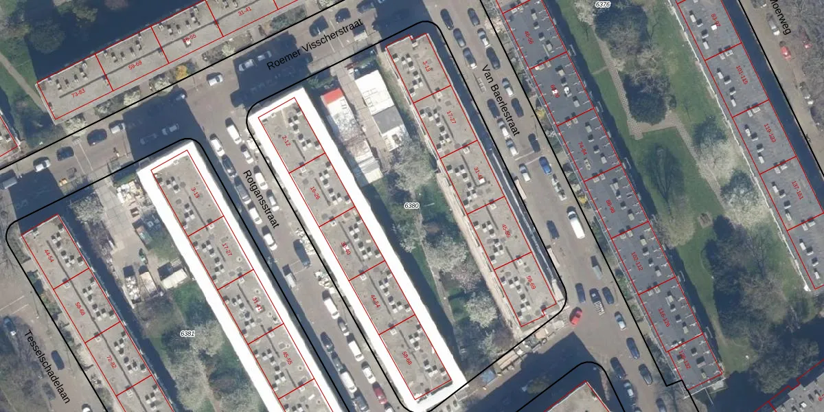 Gebruik de zoekbalk of klik op een perceel om informatie over het perceel te bekijken.