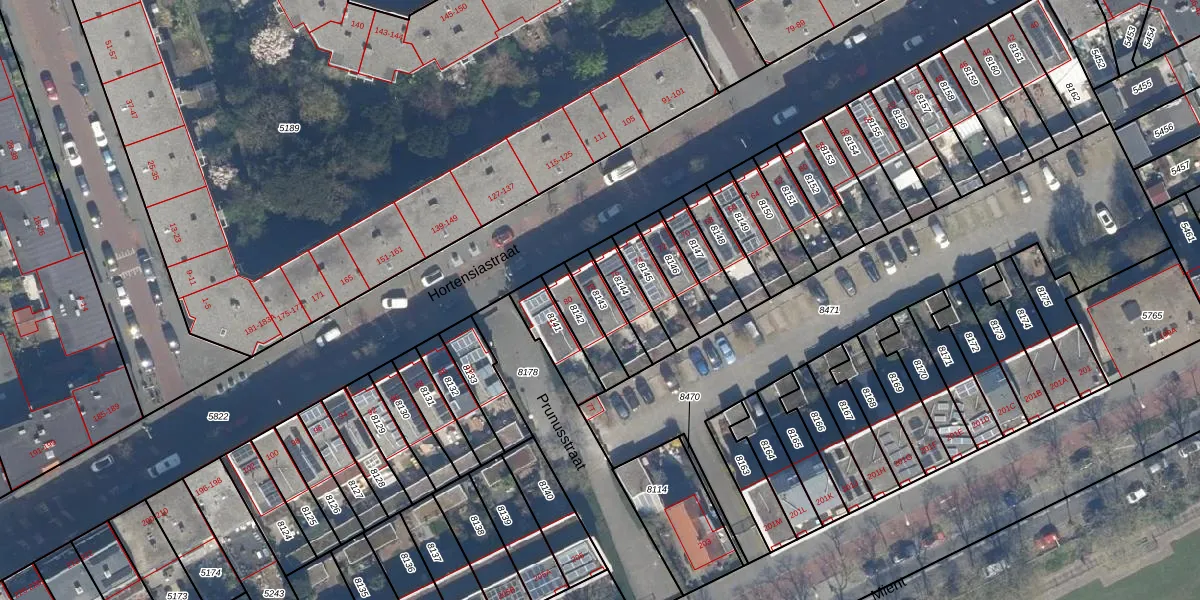 Gebruik de zoekbalk of klik op een perceel om informatie over het perceel te bekijken.