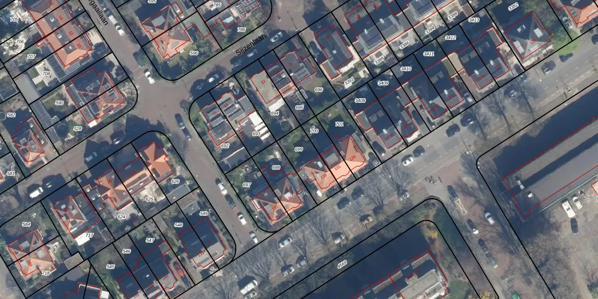 Gebruik de zoekbalk of klik op een perceel om informatie over het perceel te bekijken.