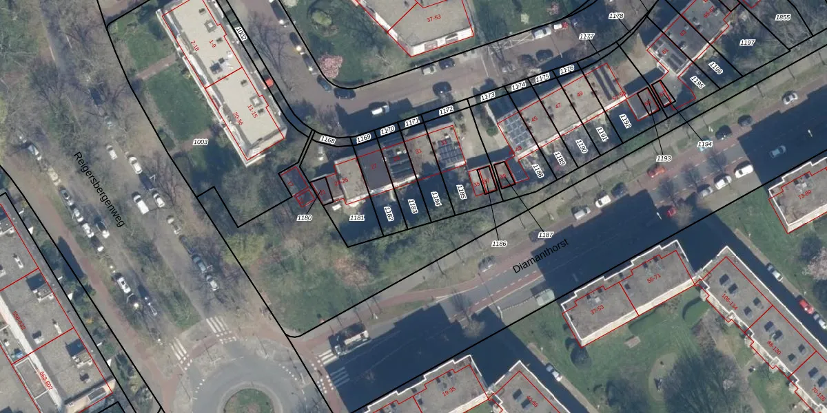 Gebruik de zoekbalk of klik op een perceel om informatie over het perceel te bekijken.
