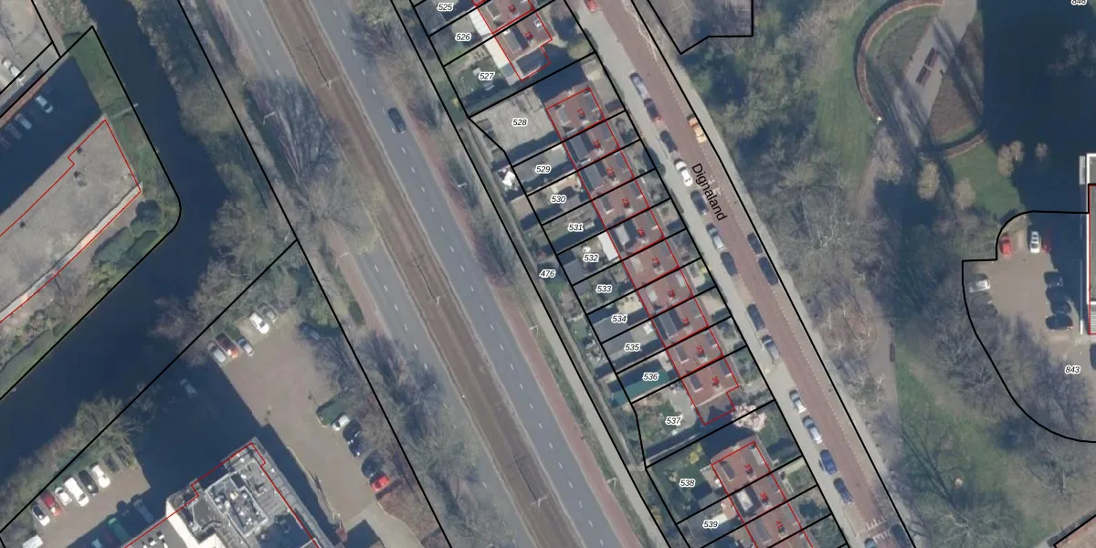 Gebruik de zoekbalk of klik op een perceel om informatie over het perceel te bekijken.