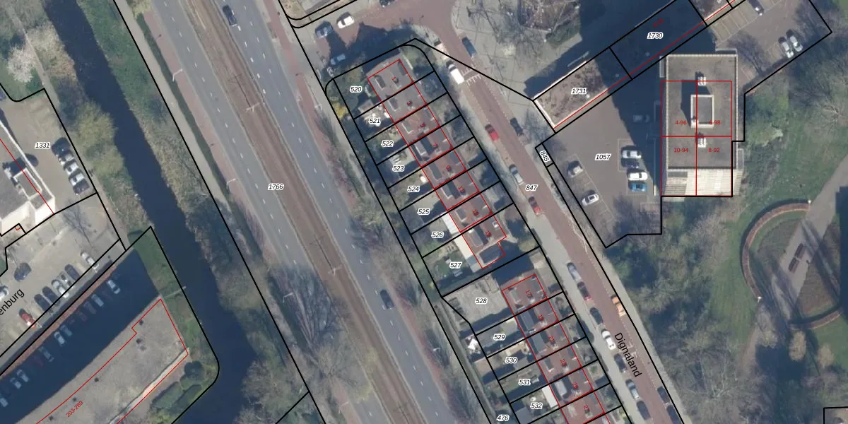 Gebruik de zoekbalk of klik op een perceel om informatie over het perceel te bekijken.