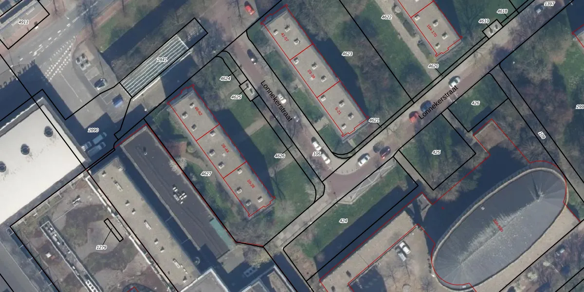 Gebruik de zoekbalk of klik op een perceel om informatie over het perceel te bekijken.