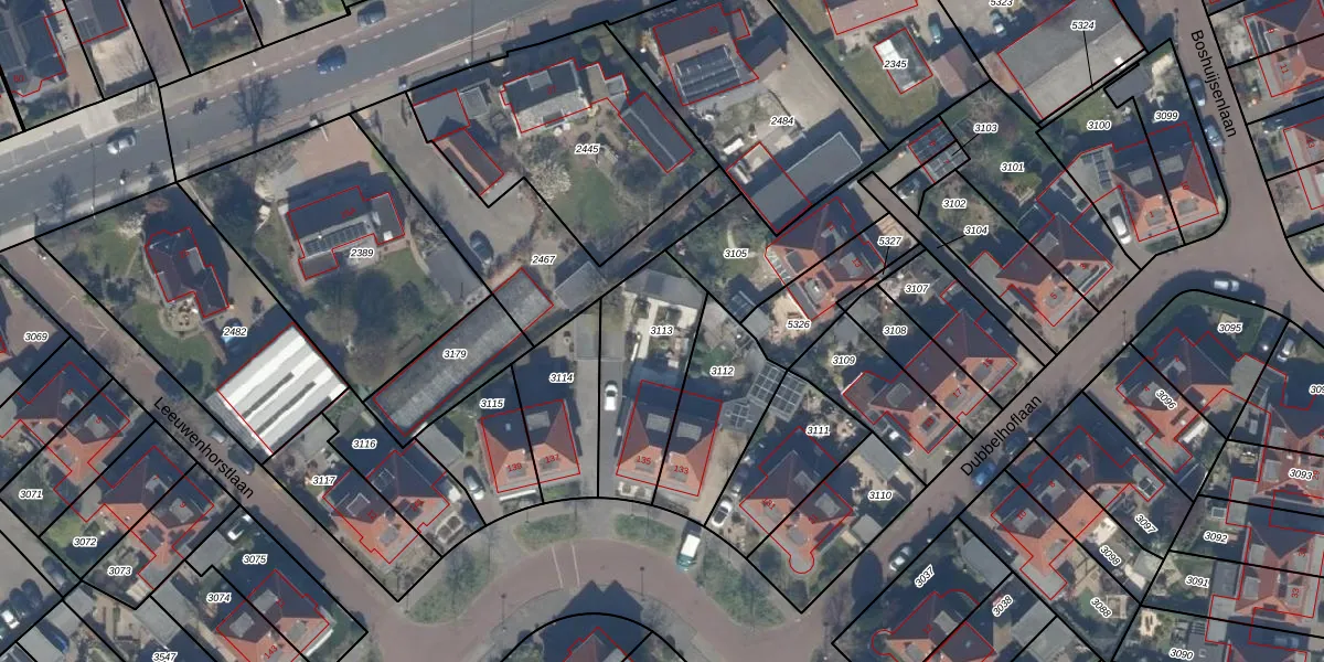 Gebruik de zoekbalk of klik op een perceel om informatie over het perceel te bekijken.