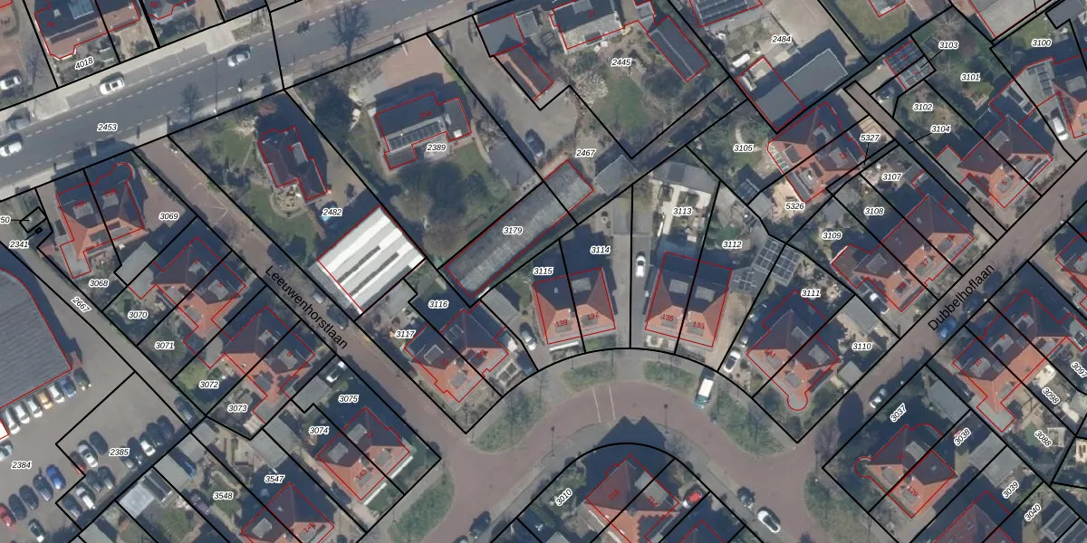Gebruik de zoekbalk of klik op een perceel om informatie over het perceel te bekijken.